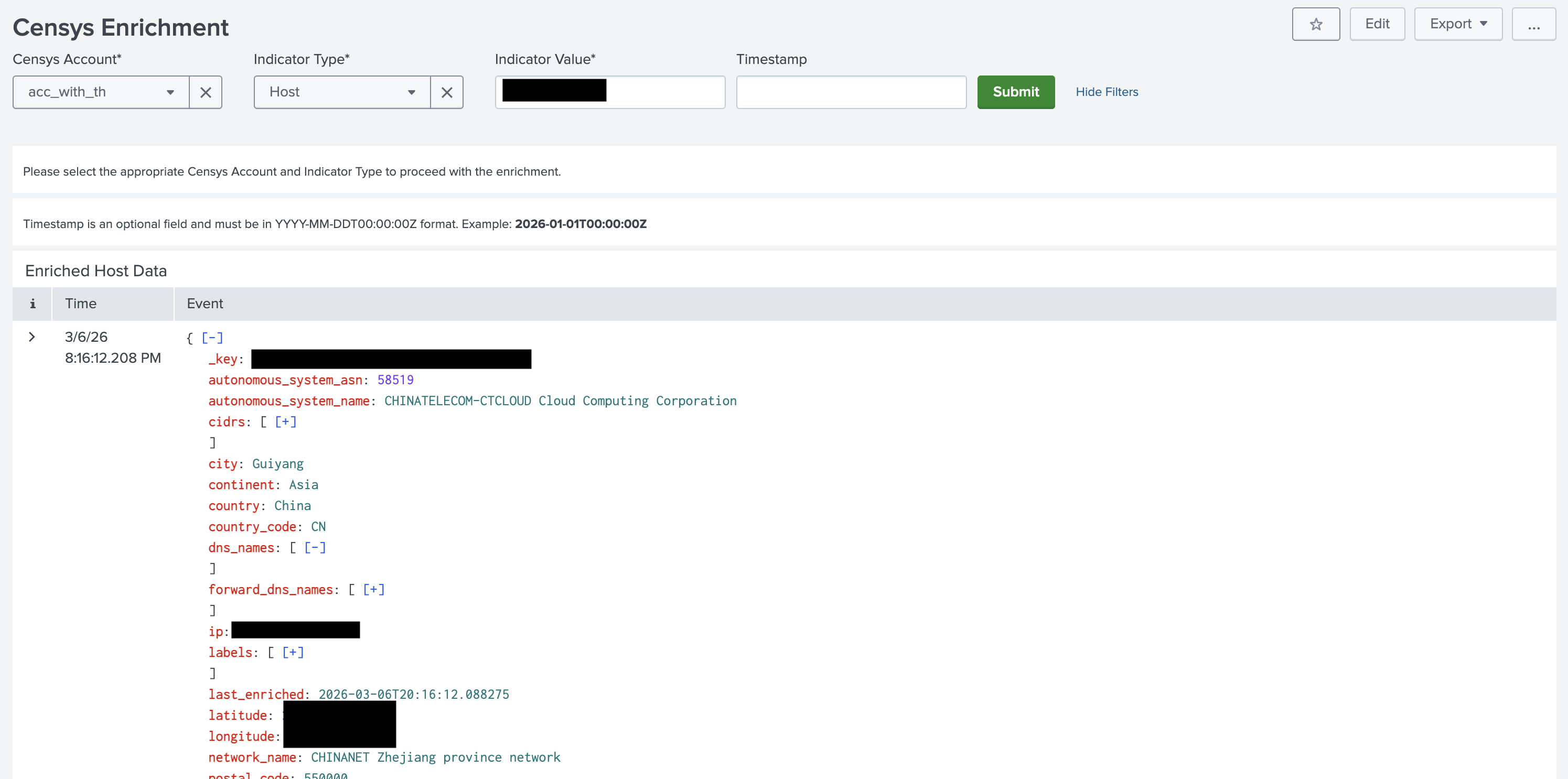 Censys for Splunk Platform Integration